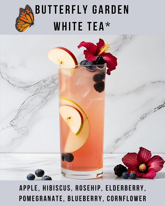 While it’s a natural for summer sipping over ice, Butterfly Garden also brews into a soft, warming cup that brightens cooler days. Whether you’re chasing sunshine or wrapping up in a sweater, this tea meets you in every season of transformation—just like the Monarchs it celebrates.