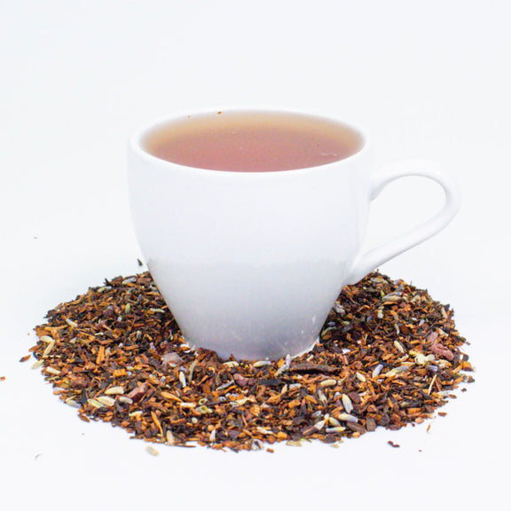 A comforting blend of rich black tea, soothing lavender, and mellow cacao. Gentle floral notes balance beautifully with hints of dark chocolate, creating a grounded and serene cup.